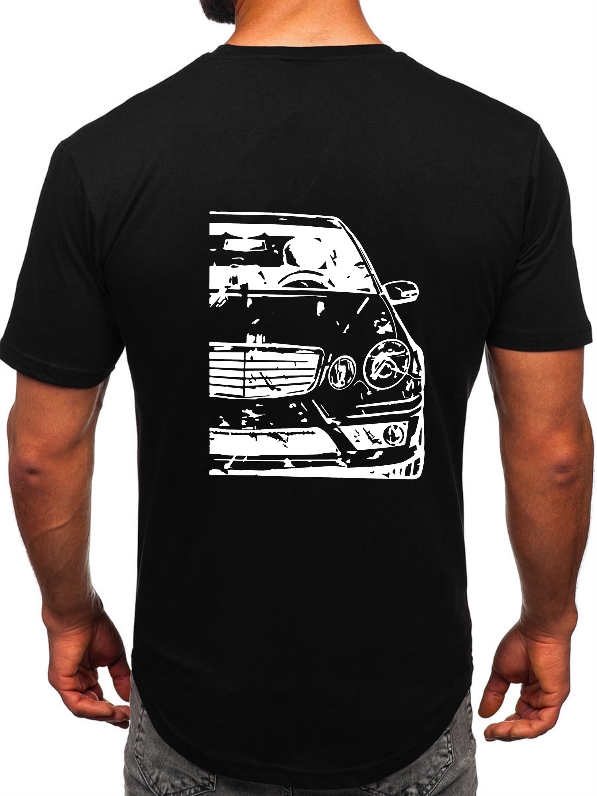 The personalized Mercedes W211 T-shirt for men, available in 4 different colors.
